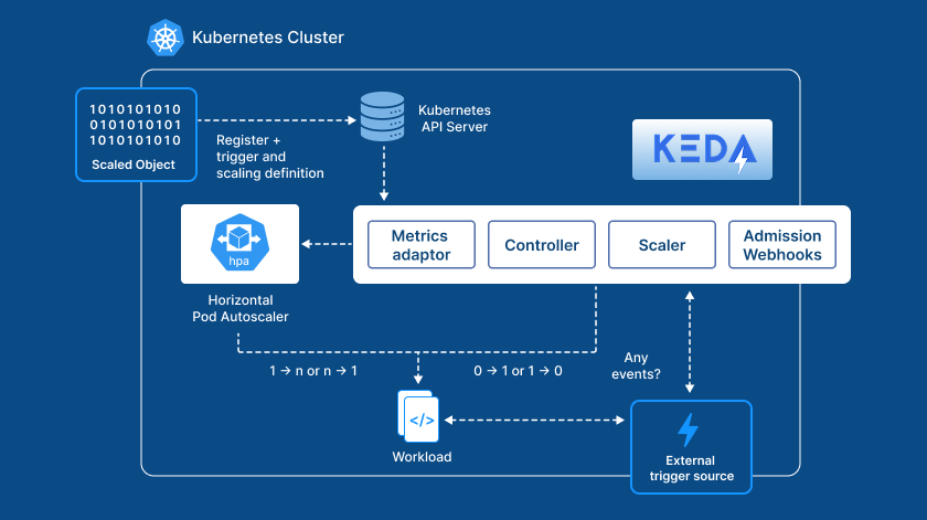 Seamless Integration: KEDA works hand-in-hand with Horizontal Pod Autoscaler (HPA) to ensure that pods are scaled to the optimal number based on load, ensuring that we only use the resources necessary to handle incoming requests efficiently.